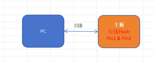 4. 短接 FLASH PIN1 与 PIN2 脚位保持再通过 USB 线插电脑供电板子【如板子配有强制烧录按钮,可以通过按强烧按钮代替上面的短接操作】。
