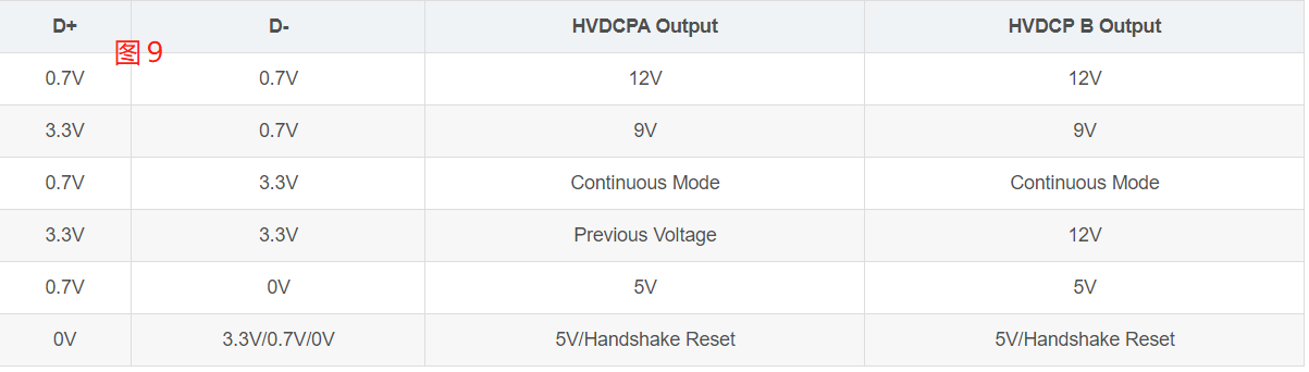 (d)手机按照如下规则,通知充电器,输出对应的电压。这个过程 D+=0.7,D-=3.3。是 continuous mode