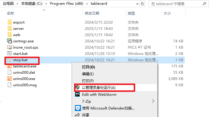 打开软件目录, 找到 stop.bat, 以管理员身份运行